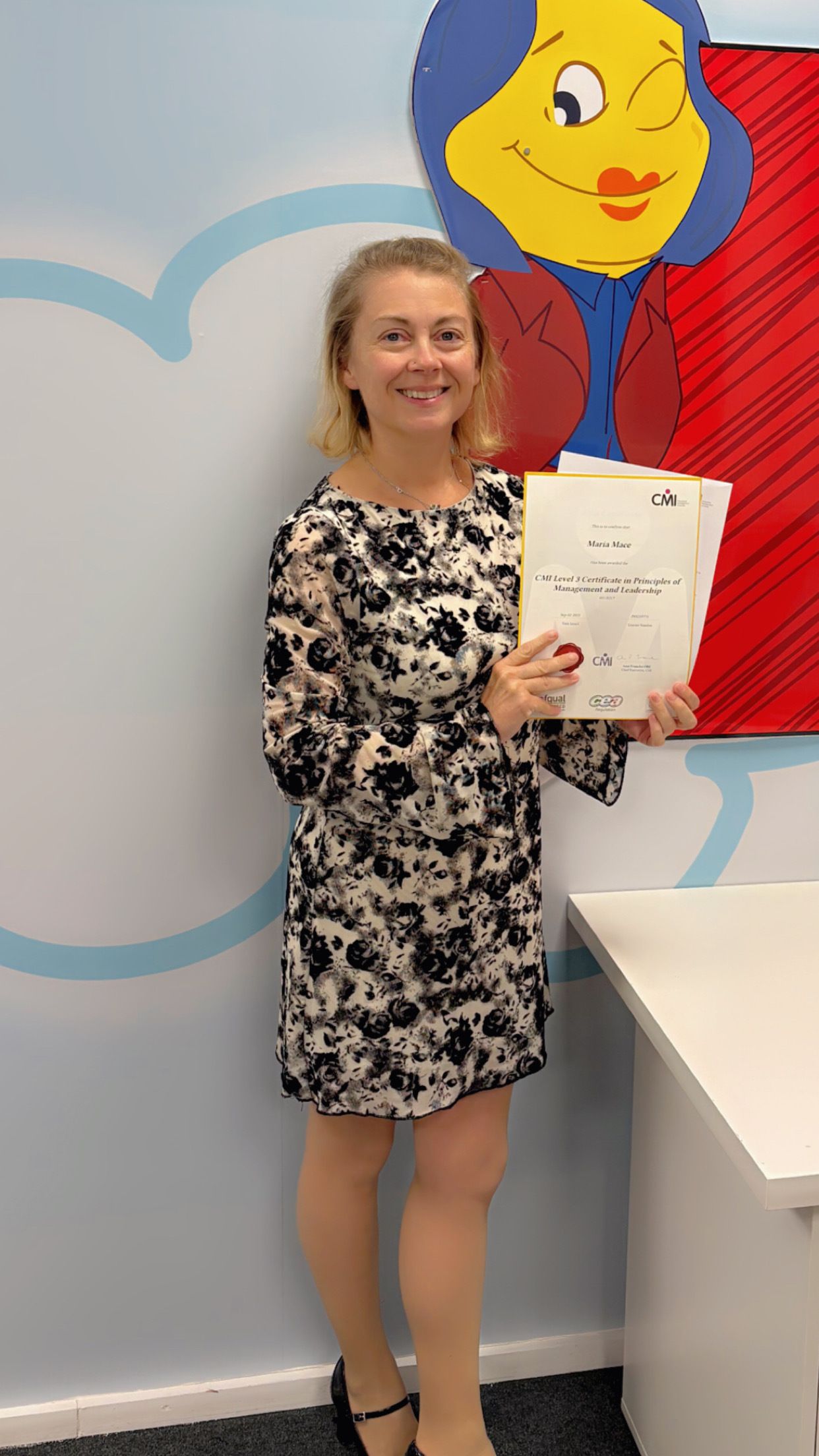 This week it gave me great pleasure to present Maria in our team with her CMI (Chartered Management Institute) Level 3 Certificate in Management and Leadership.